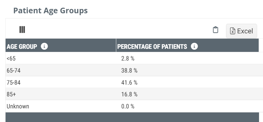 This table gives a simple breakout of the patients for the selected facility by age.