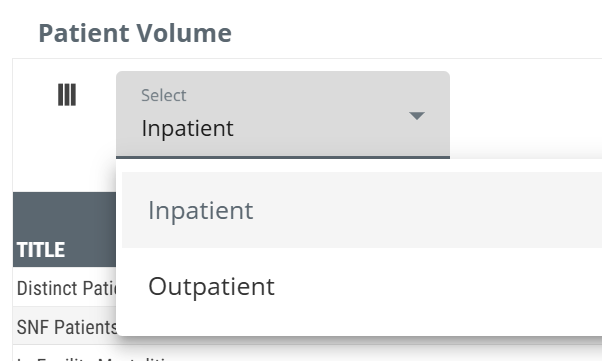 The top grey box labeled Inpatient is a drop-down button that will allow you to change the content of the table to patient counts for outpatient discharges.