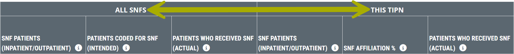 This table allows you to evaluate and compare critical metrics for the skilled nursing facilities aligned with the selected TIPN.