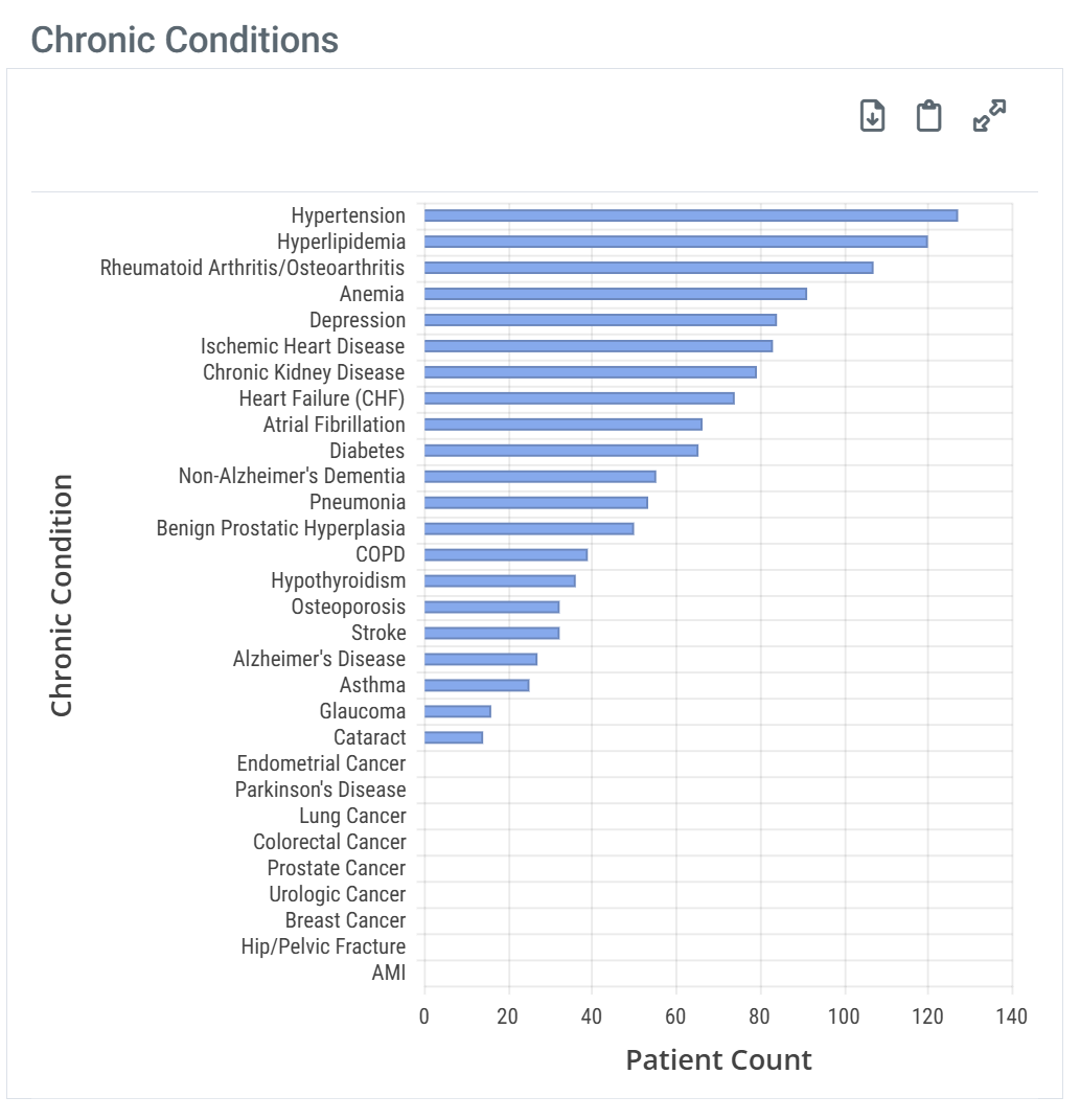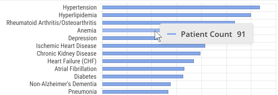 | When you hover over a bar in the Chronic Conditions chart, the metric for the patient count represented in the bar is displayed. | ![]() |